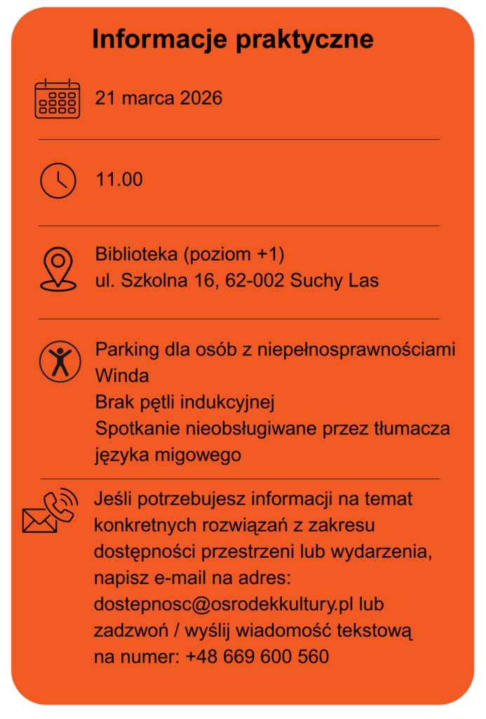 Puszcza to niesamowity organizm z mnóstwem mieszkańców, którzy wraz z otaczającą ją naturą są od siebie bardzo zależni. To miejsce osnute wieloma tajemnicami, legendami, w którym drzemie pewna słowiańska baśniowość. Jest to zachwycająca swym urokiem przestrzeń, gdzie czas płynie zupełnie inaczej, a wszystko podporządkowane jest naturalnemu rytmowi życia i zmieniających się pór roku. Puszcza to bogactwo zwierząt i roślin, które od lat wzbudzają podziw wśród wielu naukowców oraz zwyczajnych obserwatorów. Zapraszamy najmłodszych wielbicieli przyrody do sucholeskiej biblioteki w pierwszy dzień wiosny 21 marca 2026 roku na godz. 11:00 na literacki spacer po puszczy właśnie. Zajęcia kierowane są do dzieci w wieku 3-5 lat wraz z opiekunami. Zapisy w bibliotece lub pod nr telefonu 61 25 00 401.
